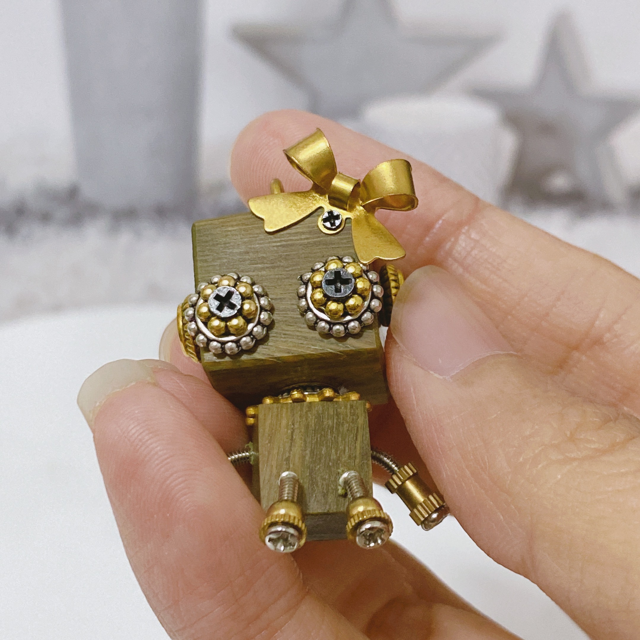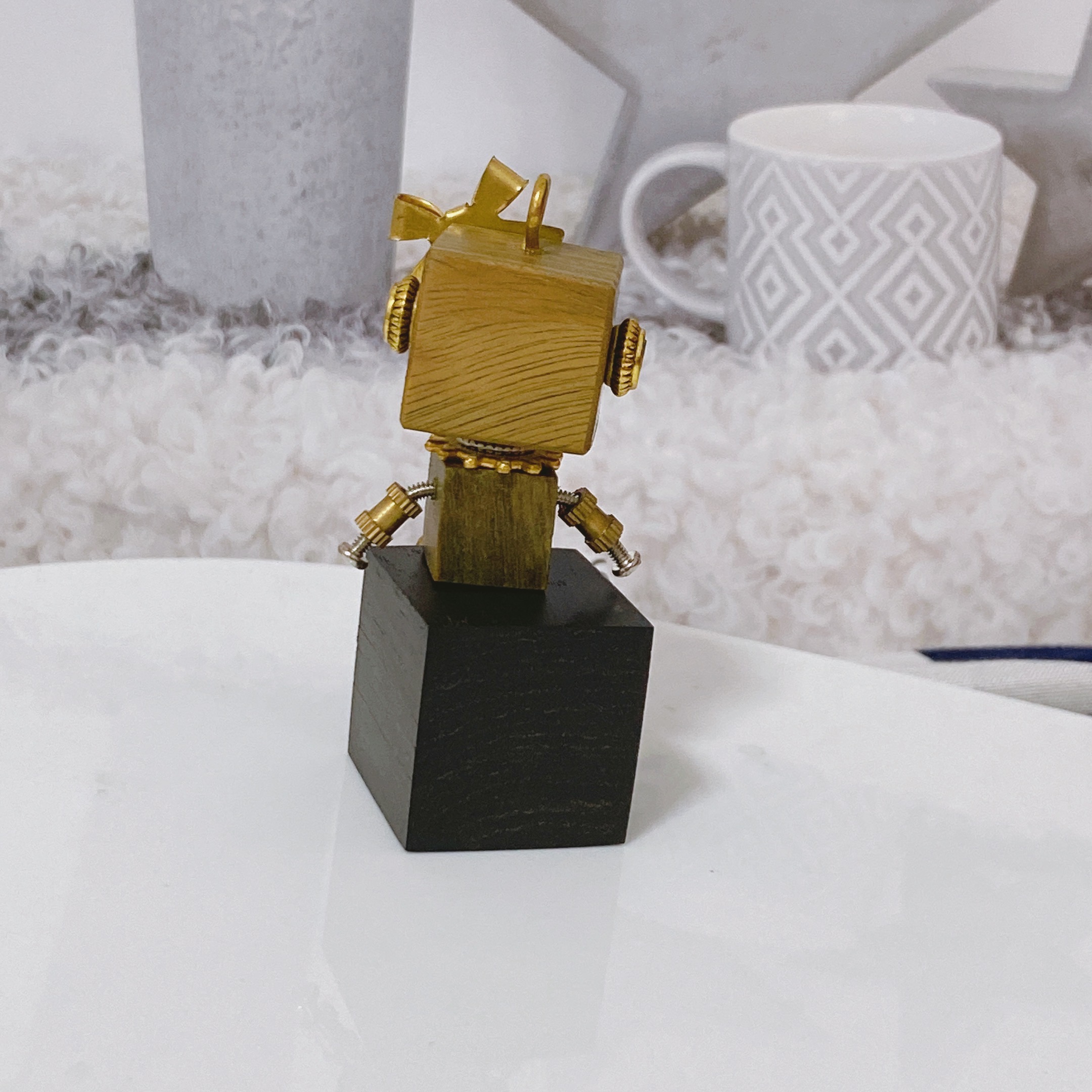 Gearlette – Tiny Steampunk Wood Robot Desk Decor