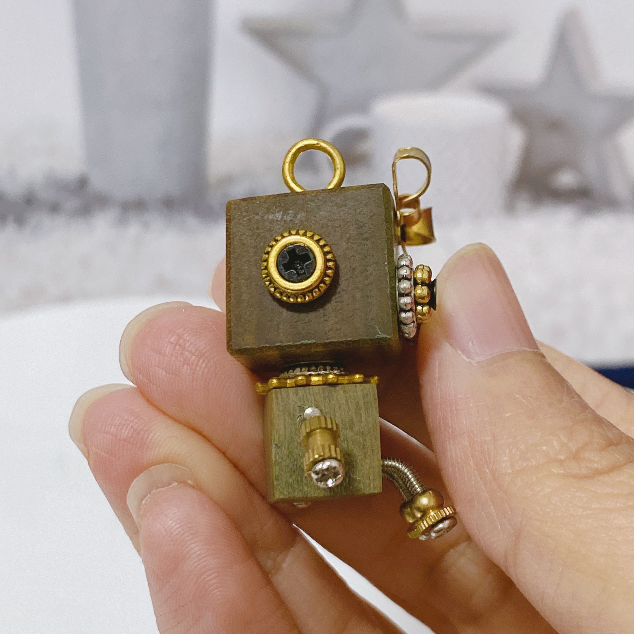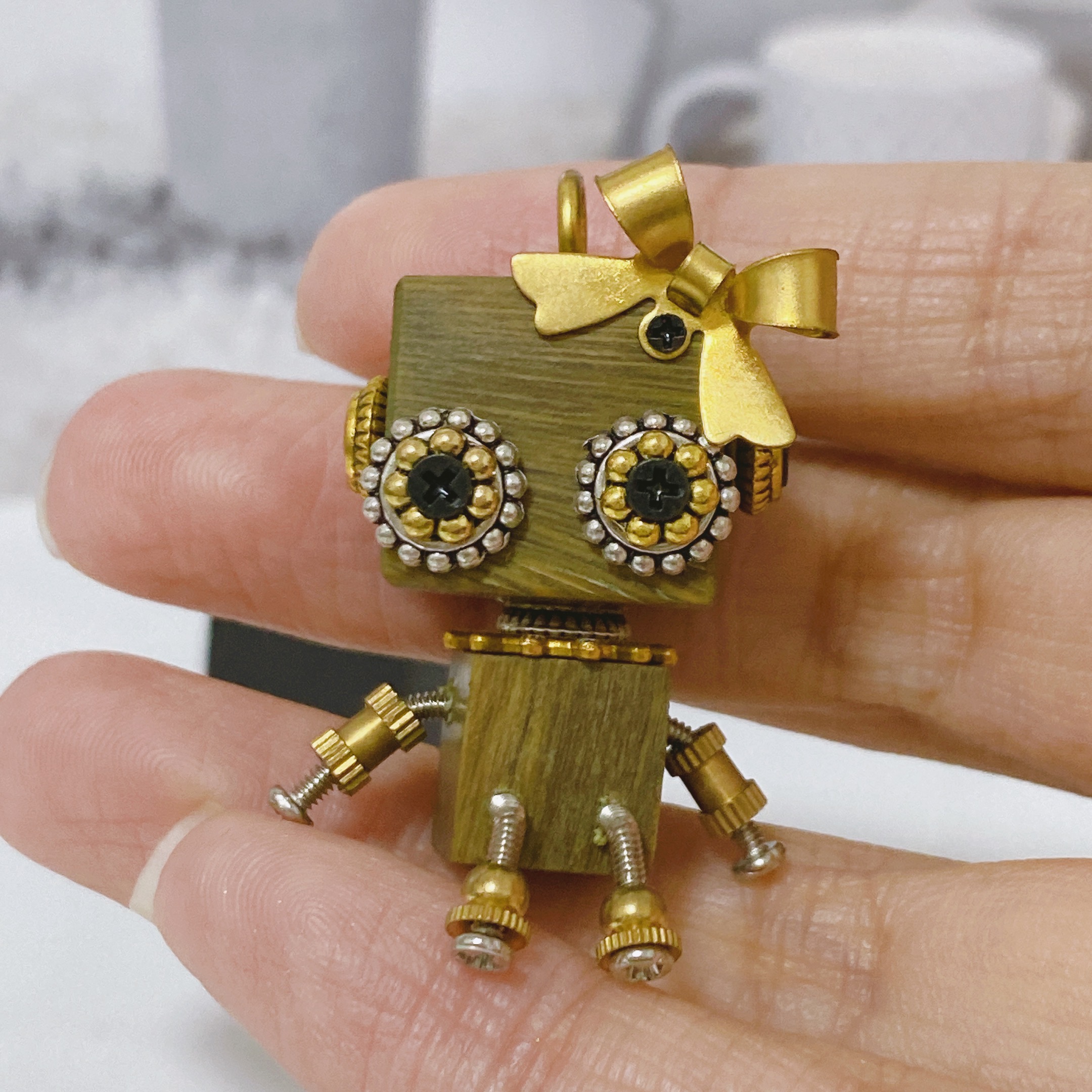 ❤︎ Crafted from polished wood and assembled with “gears, screws, bolts, springs, metal parts etc”, this unique steampunk robot blends vintage industrial charm with modern artistry. Its smooth, sanded finish and intricate details evoke curiosity and creativity, making it a perfect decorative piece for steampunk enthusiasts, collectors, or anyone who appreciates unique handmade decor. This wooden robot is a one-of-a-kind treasure that adds personality and charm to your home, office or car.